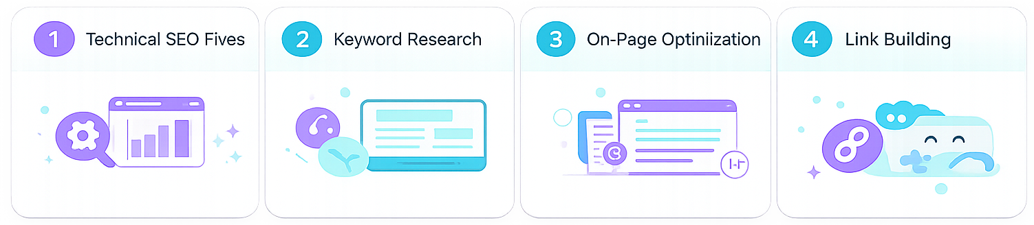Our SEO audit services include:Technical SEO audit (speed, Core Web Vitals, indexing, crawl errors)On-page SEO analysis (titles, meta tags, content, internal linking)Competitor SEO analysisKeyword gap analysisBacklink profile auditStep-by-step recommendations to improve rankingsYou receive a detailed, easy-to-understand report with actionable fixes.